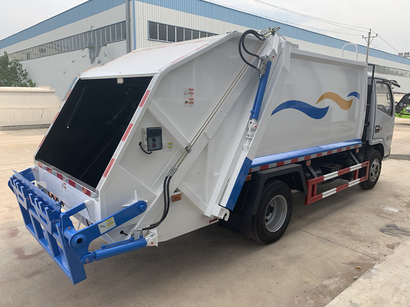 上裝配置:新款平面弧形廂體,廂體材料為武鋼優(yōu)質(zhì)碳鋼邊3底4mm厚,有效壓縮容積5-6立方,9支液壓油缸制動(dòng),PLC一鍵操作控制,手電一體操作模式,兩側(cè)雙電控,帶駕駛室內(nèi)操作,底板支撐加強(qiáng),雙向壓縮,開(kāi)放式易清潔污水箱。壓縮式垃圾車(chē)采用機(jī)電液一體化技術(shù),借助機(jī)、電、液聯(lián)合自動(dòng)控制系統(tǒng)、電腦控制、手動(dòng)操作系統(tǒng),通過(guò)填裝器和推鏟等專用裝置,實(shí)現(xiàn)垃圾倒入、壓碎或壓扁、強(qiáng)力裝填,把垃圾擠入車(chē)廂并壓實(shí)和推卸,污水全部進(jìn)入污水廂,解決了垃圾運(yùn)輸過(guò)程中的二次污染的問(wèn)題。壓縮式垃圾車(chē)具有自動(dòng)反復(fù)壓縮以及蠕動(dòng)壓縮功能,壓縮比高、密封性好、裝載量大﹑操作方便、環(huán)保性好﹑整車(chē)?yán)霉β矢叩葍?yōu)點(diǎn)。作業(yè)自動(dòng)化,垃圾收集方式簡(jiǎn)便、高效。后翻轉(zhuǎn)機(jī)構(gòu)選裝:1、掛塑料桶式翻轉(zhuǎn)機(jī)構(gòu);2、掛鐵桶式翻轉(zhuǎn)機(jī)構(gòu),可掛標(biāo)準(zhǔn)塑料桶240/660升;3、擺臂式翻轉(zhuǎn)機(jī)構(gòu); 4、簸箕斗式翻轉(zhuǎn)機(jī)構(gòu)。