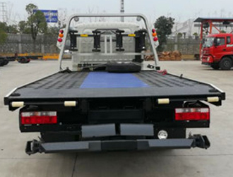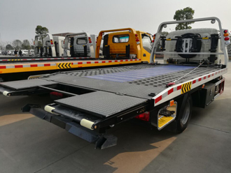 該車平板長度為5.3米(含液壓伸縮加長部份),寬2.22米,3P2A折疊沖壓式平板,帶100CM液壓伸縮式可加長平板。該車采用國標(biāo)優(yōu)質(zhì)碳鋼花紋板制作,平板由多塊壓制預(yù)壓板組成,10根加強(qiáng)型槽鋼橫梁固定,既減輕了整車重量,又增加了托舉和裝載能力。 大承載質(zhì)量為2.5噸,平板 小傾斜角為8度,托舉系統(tǒng)額定托舉質(zhì)量為1.2噸,采用1個(gè)4噸液壓絞盤,加粗鋼絲繩20米,一個(gè)工具箱,一個(gè)洗手箱,該車配備6個(gè)綁帶,鏈鉤一條,可選裝LED長排警燈。
