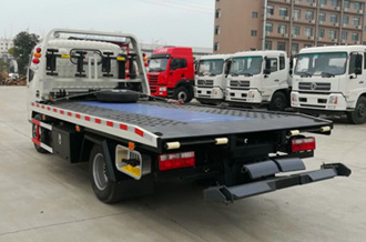 該車平板長(zhǎng)度為5.3米(含液壓伸縮加長(zhǎng)部份),寬2.22米,3P2A折疊沖壓式平板,帶100CM液壓伸縮式可加長(zhǎng)平板。該車采用國(guó)標(biāo)優(yōu)質(zhì)碳鋼花紋板制作,平板由多塊壓制預(yù)壓板組成,10根加強(qiáng)型槽鋼橫梁固定,既減輕了整車重量,又增加了托舉和裝載能力。 大承載質(zhì)量為2.5噸,平板 小傾斜角為8度,托舉系統(tǒng)額定托舉質(zhì)量為1.2噸,采用1個(gè)4噸液壓絞盤,加粗鋼絲繩20米,一個(gè)工具箱,一個(gè)洗手箱,該車配備6個(gè)綁帶,鏈鉤一條,可選裝LED長(zhǎng)排警燈。