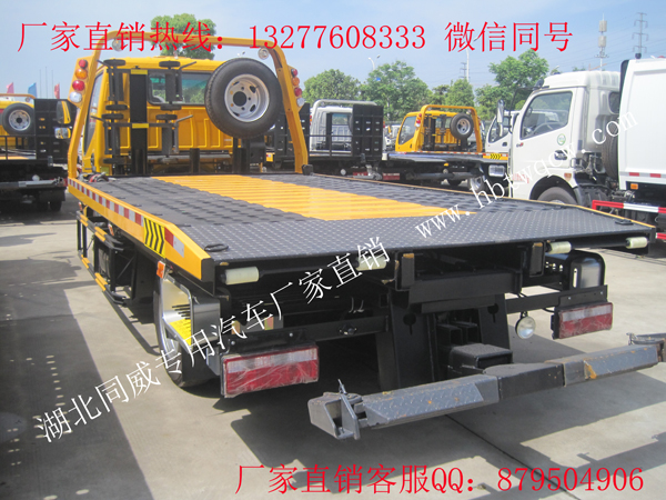 一拖二3P2上裝,沖壓式平板,雙側(cè)聯(lián)動操作裝置,配備一個40KN卷揚(yáng)機(jī)、25米鋼絲繩、廣東海戰(zhàn)力液壓油缸、1-2個工具箱(根據(jù)底盤空間制作),L型抱胎架一堆,拖叉一對,拖叉座一對,擋胎2個,2個輔助輪,4根新款綁帶,一個洗手箱,鏈鉤一條,一個長排24V工程黃警燈,后工作燈3只。